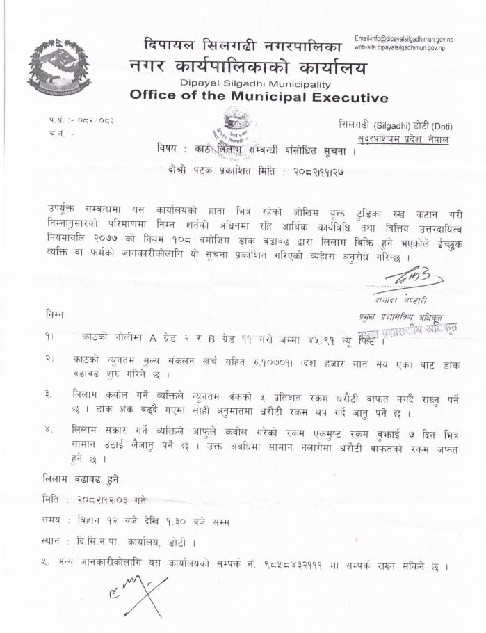 काठ लिलाम सम्बन्धी शंसोधित सूचना ।