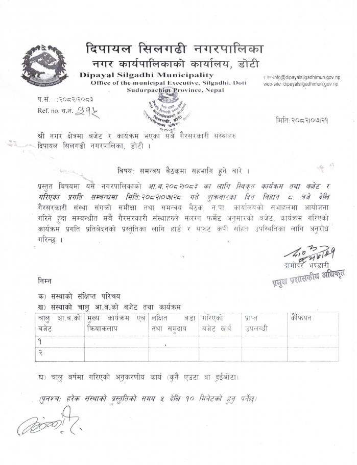 समन्वय बैठकमा सहभागी हुने बारे ।