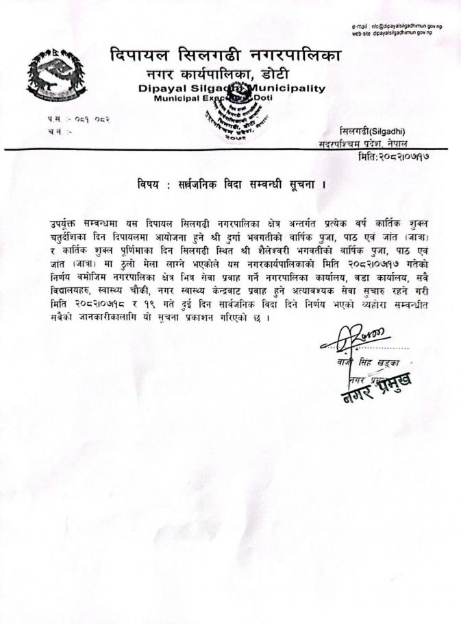 » सार्वजनिक विदा सम्बन्धी सूचना