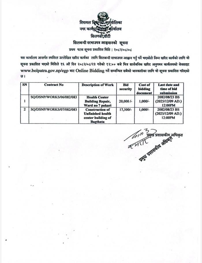 » सिलबन्दी दरभाउपत्र आह्वावानको सूचना