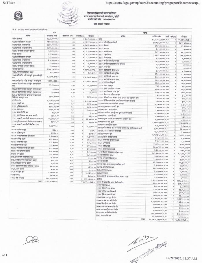 आ.व. ०८२।०८३ मंसिर महिनाको आय व्ययको विवरण सार्वजनिक गरिएको ।