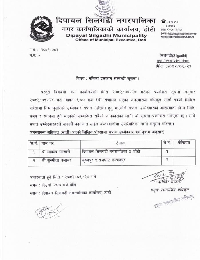 नतिजा प्रकाशन सम्बन्धी सूचना ।