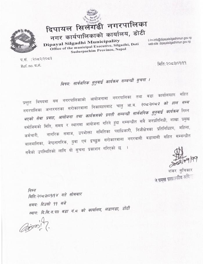 सार्वजनिक सुनुवाई कार्यक्रम सम्बन्धी सूचना