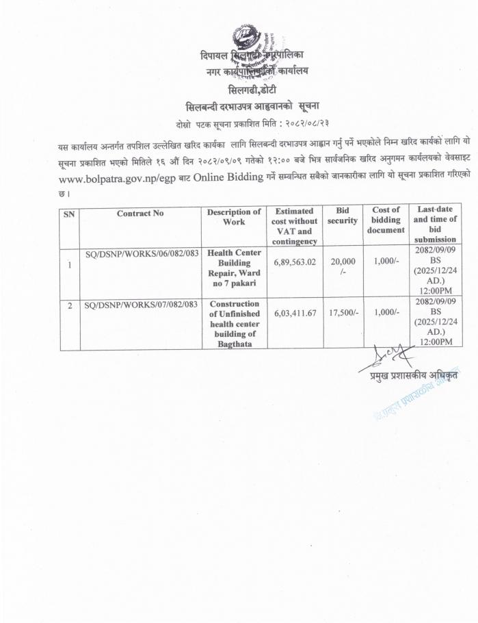 » सिलबन्दी दरभाउपत्र आह्वावानको सूचना