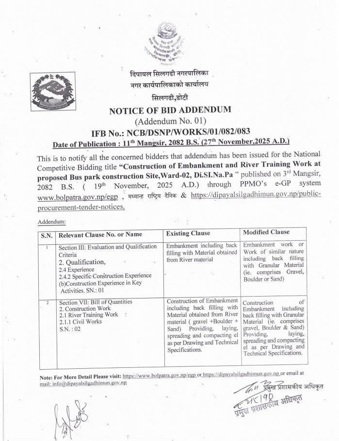 Notice of Bid Addendum